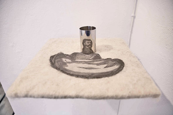 IN MEMORIAM SOPHIE SCHOLL, genähte Malerei, gefärbt mit Hagebutte, 2021
