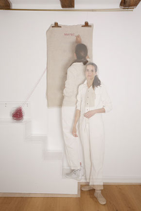 IN MEMORIAM SOPHIE SCHOLL, genähte Malerei, gefärbt mit Hagebutte, 2021